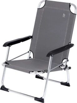 Deze compacte Bo-Camp Copa Rio inklapbare strandstoel combineert stijl, comfort en functionaliteit. Hij is ideaal om te ontspannen op het strand, op de camping of in het park. De inklapbare stoel is gemaakt van duurzaam en luxe, 2-kleurig, 600 denier, polyester oxfordstof met een lichtgewicht aluminium frame. Deze campingstoel is uitgerust met stabilisatoren en een veiligheidsvergrendeling om onbedoeld inklappen te voorkomen. De strandstoel kan worden ingeklapt zodat hij compact is en gemakkelijk te vervoeren is.