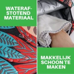 De buitenzijde is slijtvast en gemaakt van waterafstotend materiaal met een hoge dichtheid. Wees dus niet bang als je overvallen wordt door een plotselinge regenbui.