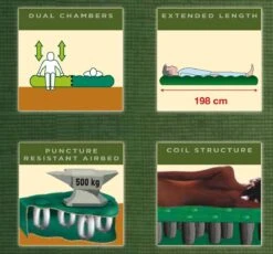 Het Coleman 2 persoons luchtbed is royaal van afmeting. Daarnaast is het luchtbed extra lang en kan het een gewicht aan van maximaal 295 kilo. Ideaal voor tijdens een kampeertrip of voor thuisgebruik. Dit luchtbed heeft 2 aparte luchtkamers zodat iedere slaper individueel de stevigheid van zijn/haar luchtmatras kan bepalen. Dankzij de spoelstructuur biedt dit bed extra comfortabele ondersteuning aan het hele lichaam voor een optimale nachtrust.