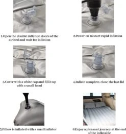 - Goede accessoires en gemakkelijk te reinigen: het opblaasbare autobed is ook uitgerust met een elektrische luchtpomp (aan te sluiten op de sigarettenaansteker) met 3 adapters waarmee je de matras in minder dan 3 minuten kunt opblazen, evenals twee opblaasbare kussens, zodat je comfortabel uit kan rusten tijdens de reis. Een opbergtas is inbegrepen waardoor je hem gemakkelijk kunt dragen zonder je auto te belasten. Gemakkelijk te reinigen, met een handdoek af te vegen.