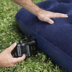 De waterdichte bovenkant voorkomt dat de lakens wegglijden en voegt comfort toe. Dit lichtgewicht opblaasbare matras heeft een lengte van 188 cm en kan worden opgeblazen tot een hoogte van 22 cm, waardoor je een goede nachtrust krijgt op de camping. Het luchtbed kan snel worden opgeblazen en geleegd. Het luchtbed is ook gemakkelijk op te vouwen voor opslag en transport wanneer het niet wordt gebruikt.
